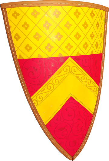 Built to the same structural specification as the Skalitz Shield: plywood boards, linen face, chalk gesso. The chevron device is executed in silver leaf on a black mineral ground. The backing is natural linen, attached with period-correct adhesive. The shield is intended for display and light re-enactment use.
